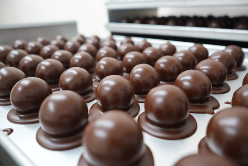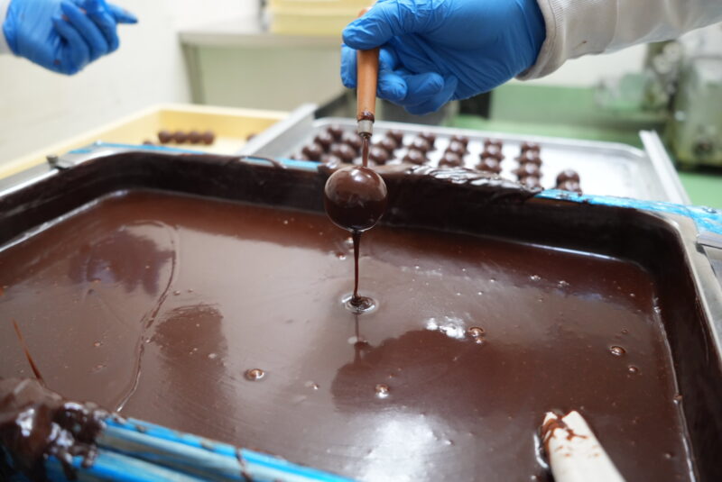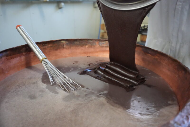 ワインで香りづけしたチョコレート餡をまるめ、それを包み込むのはチョコレート羊羹。