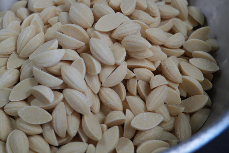 オーガニック・フェアトレードカカオの活動をしている「KAOKA」のカカオ分35%ホワイトチョコレートを餡と羊羮に使いました。